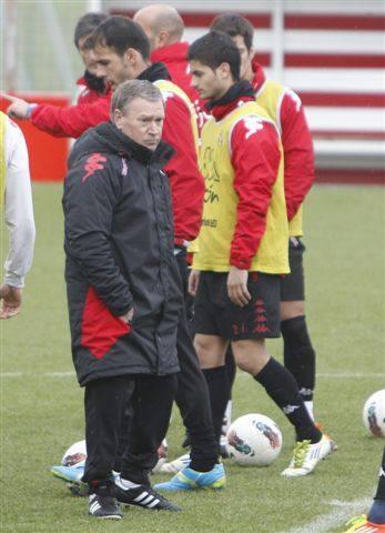 La larga charla previa a la sesión preparatoria oblígó a retrasar la comida hasta las 14.15 horas, una hora después de lo previsto inicialmente. Eso sí, quedó satisfecho del trabajo de sus jugadores y anuló el segundo entrenamiento del día. Los rojiblancos continuarán el trabajo a las 10.30 horas de este jueves, también en Mareo.